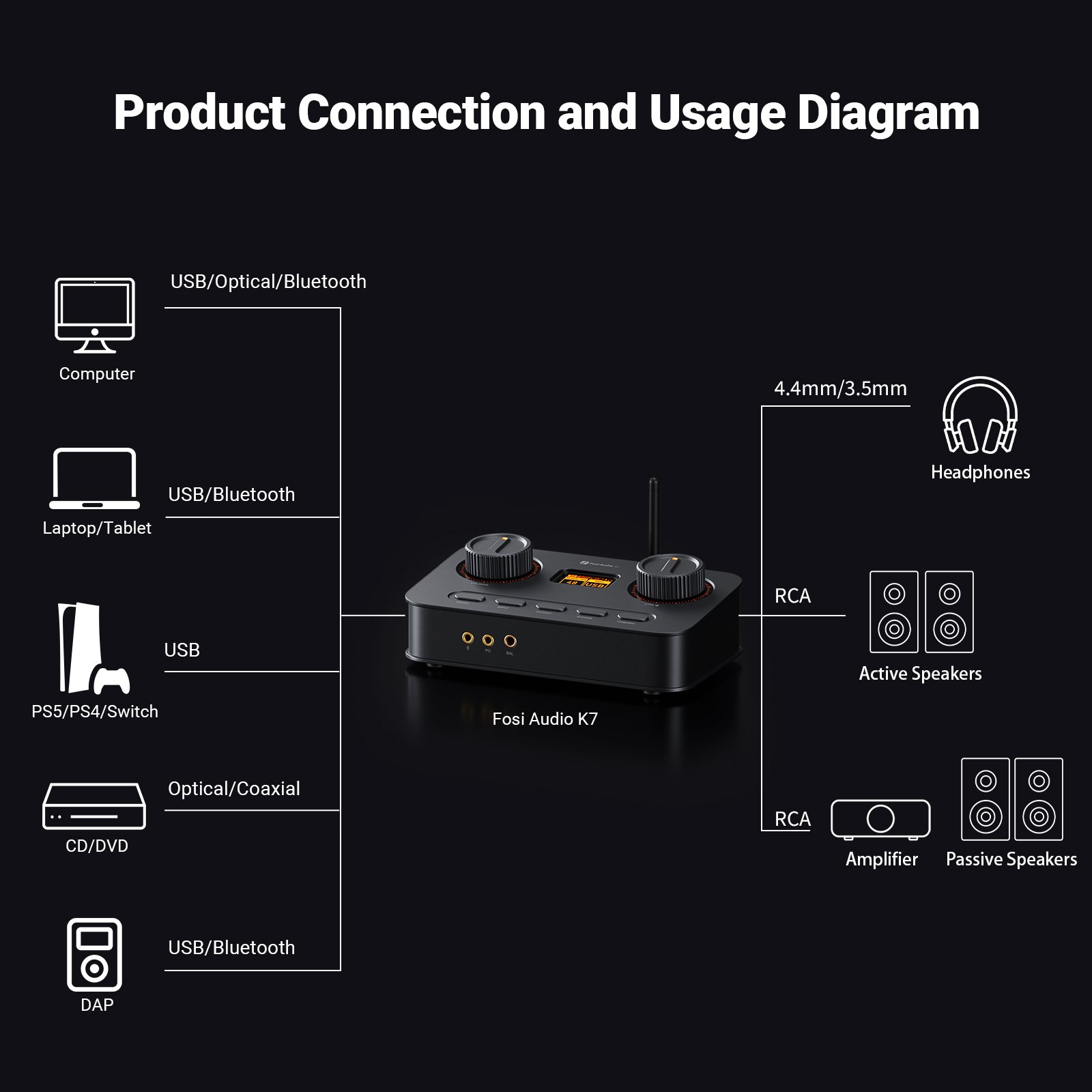 • 1× DAC/AMP Fosi Audio K7